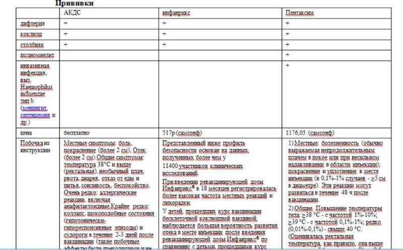 АКДС-Биолик (г.Харьков) - цельноклеточный коклюшный компонент (переносится ребенком трудно), в Инфанриксе - ацелюлярный коклюшный компонент. В развитых странах больше не используют цельноклеточный коклюшный компонент, есть исследования, показывающие, что вакцины такого типа вызывают в три раза больше осложнений.